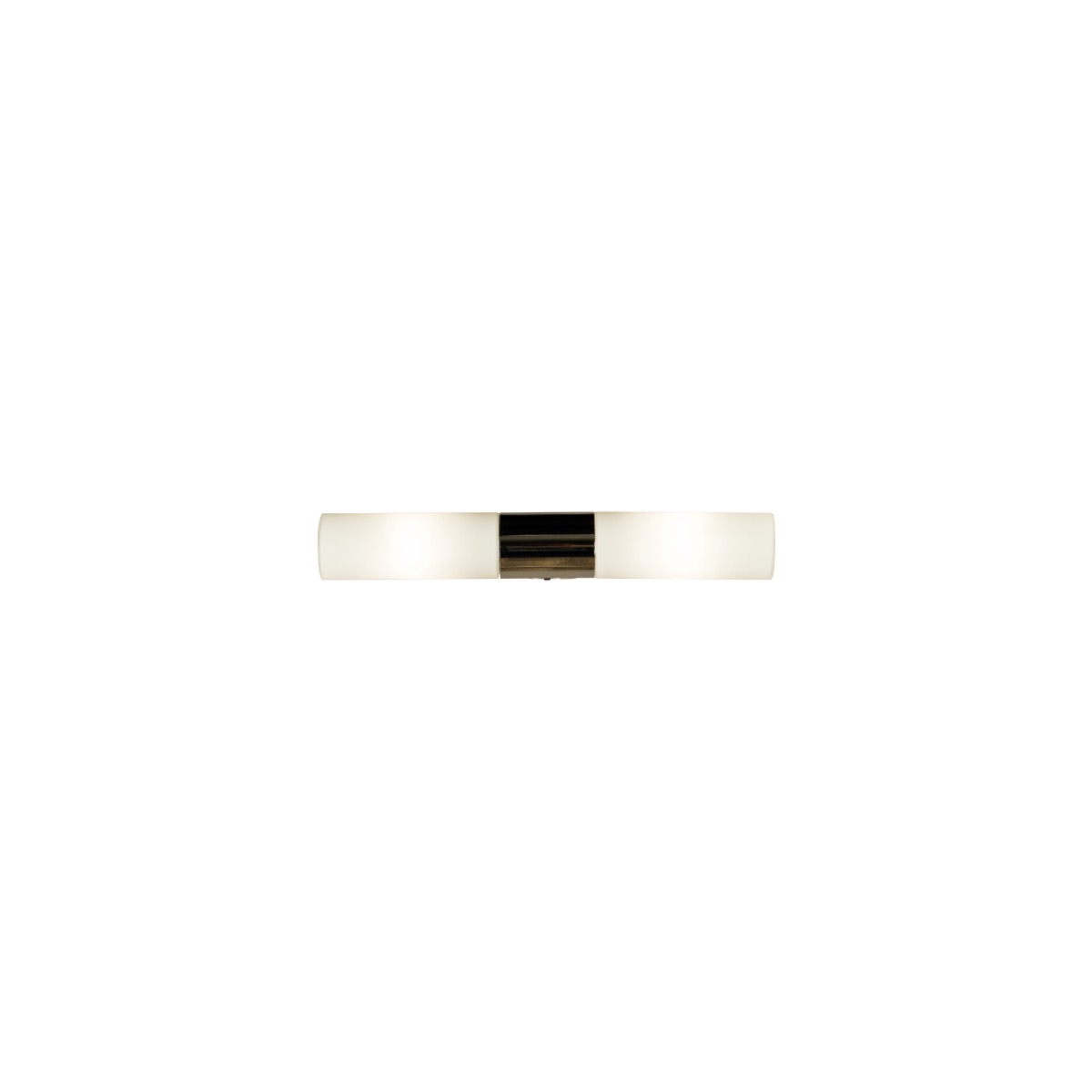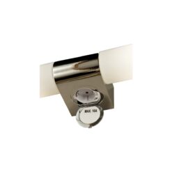 Vägglampan Cosenza med dubbla opalvita glasskärmar ger ett jämnt och behagligt ljus i badrummet. Ett praktiskt eluttag finns på lampans undersida, för anslutning av hårtork, rakapparat och liknande.