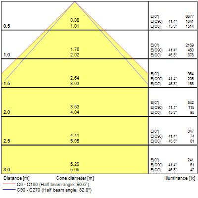 Spridningsvinkel (°) | 85 |